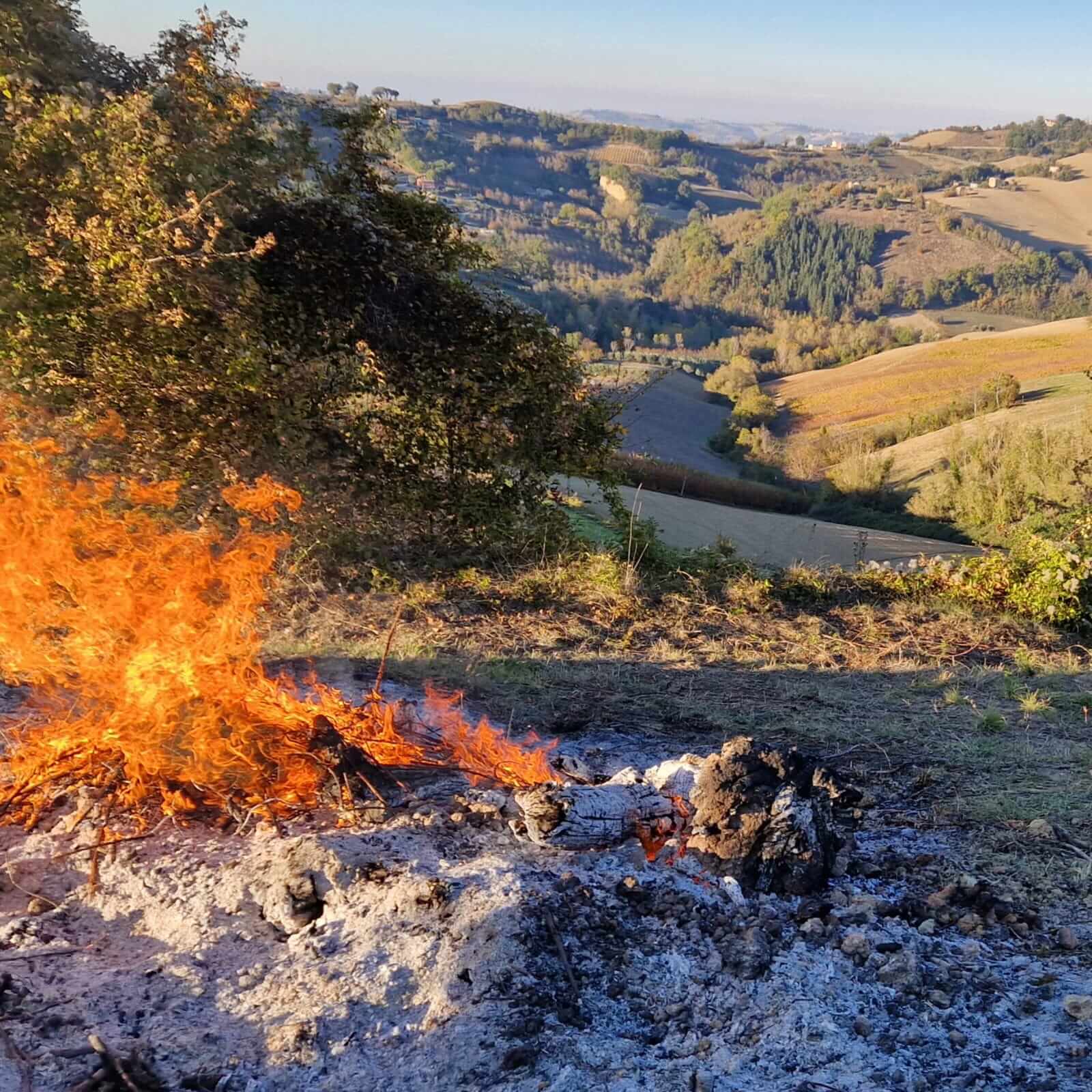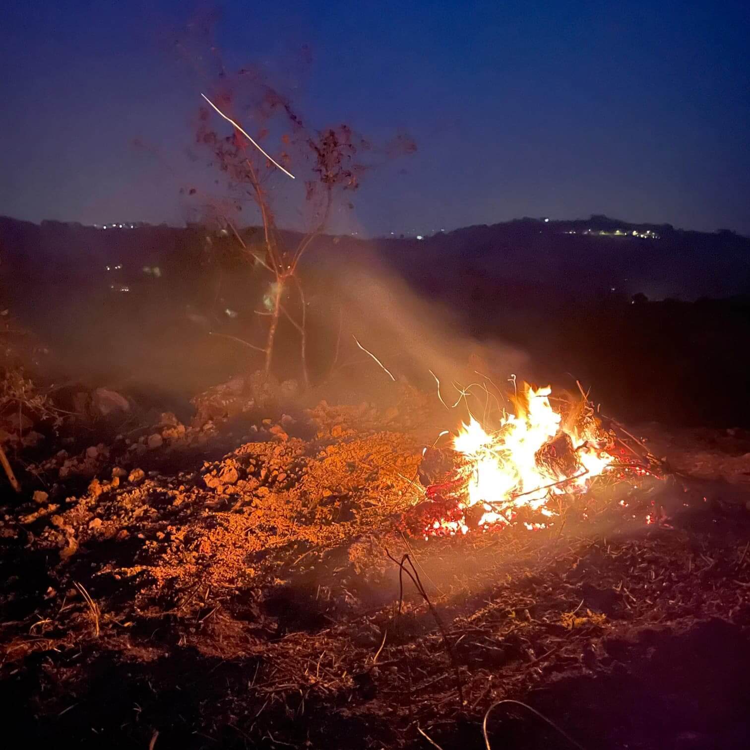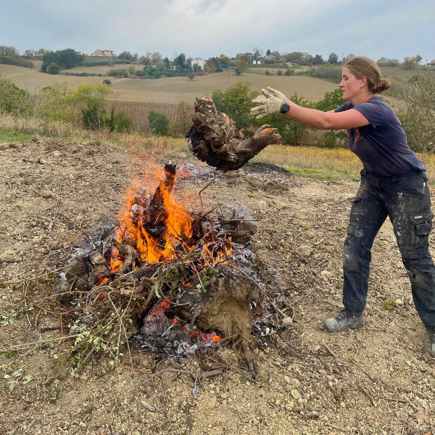 Ook het werk op ons terrein is weer een heel stuk gevorderd. De vorige keer schreven we al over de enorme berg oude boomstammen, ijzerdraad, betonpalen en braamstruiken die we probeerden te ontwarren. Toen we eenmaal een heel eind waren met de sortering, hebben we aan onze vrienden hier in de omgeving gevraagd wie er zin had om een fikkie te komen stoken. Binnen een half uur had er acht man toegezegd en twee dagen later stonden we met z'n allen een enorme berg hout weg te branden. Het was best een beetje spannend om zo'n grote fik te maken, maar met z'n allen hadden we het gelukkig goed onder controle. Het was een gigantische en zware klus die we met z'n tweeën echt nooit af zouden hebben gekregen. We zijn ontzettend blij en dankbaar dat we in zo'n fijne gemeenschap terecht zijn gekomen waar het zo vanzelfsprekend is dat mensen elkaar helpen bij allerhande klussen. Of het nu druiven plukken, lavendel snoeien, hout fikken of olijven oogsten is: iedereen staat voor elkaar klaar. 'Vele handen maken licht werk' is hier absoluut het motto. De berg groenafval is inmiddels helemaal opgebrand en het terrein is een stuk schoner en leger. Zo zijn we weer een klein stapje dichter bij het realiseren van onze gedroomde wijngaard.
